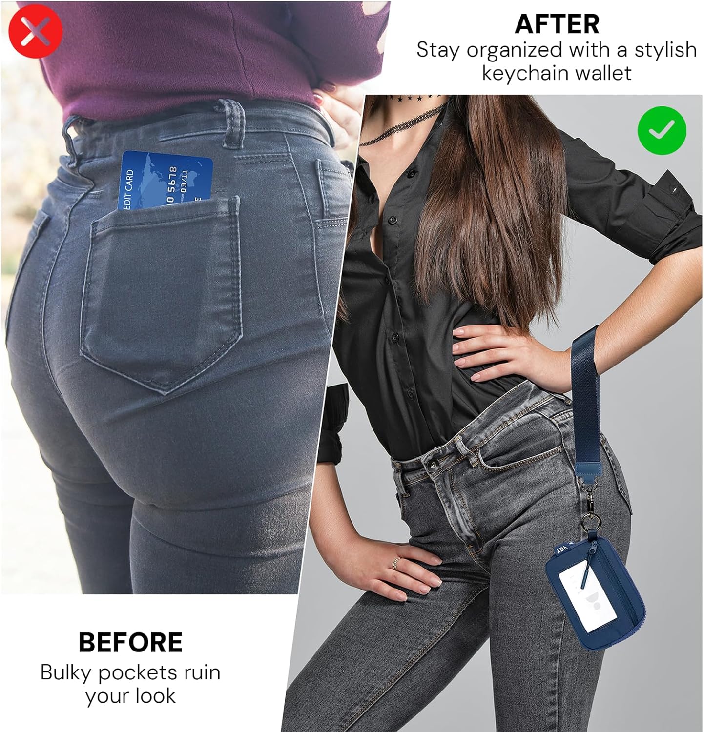 Carry it as a wristlet, clip it to your belt, or toss it in your bag—the 9.4” detachable strap and key ring keep essentials secure and accessible.